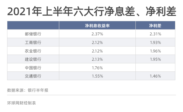 淨息差代表銀行獲利能力的強弱,是投資者關注銀行股盈利能力的重要指標。上半年,銀行淨息差仍承壓。郵儲銀行在半年報中提到,2021年上半年淨息差仍保持承壓狀態,資產質量下滑的挑戰依然存在。