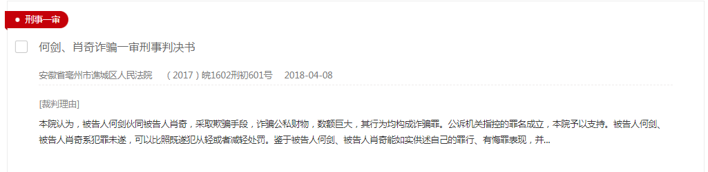 法院認為何劍夥同被告人肖奇,採取欺騙手段,詐騙公私財物,數額巨大,其行為均構成詐騙罪。被告人肖奇犯詐騙罪,判處有期徒刑二年六個月,緩刑三年,並處罰金人民幣一萬元(已繳納)。
