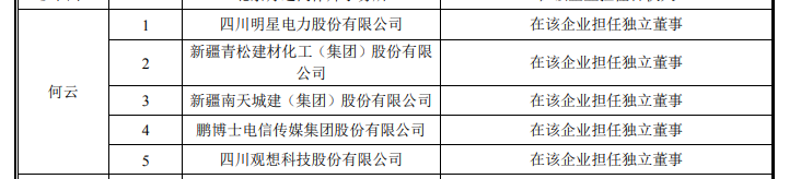 招股書披露,何雲是新疆派特獨立董事。除擔任公司獨立董事外,何雲目前還是鵬博士、新疆青松建設化工股份公司等5家企業的獨立董事。