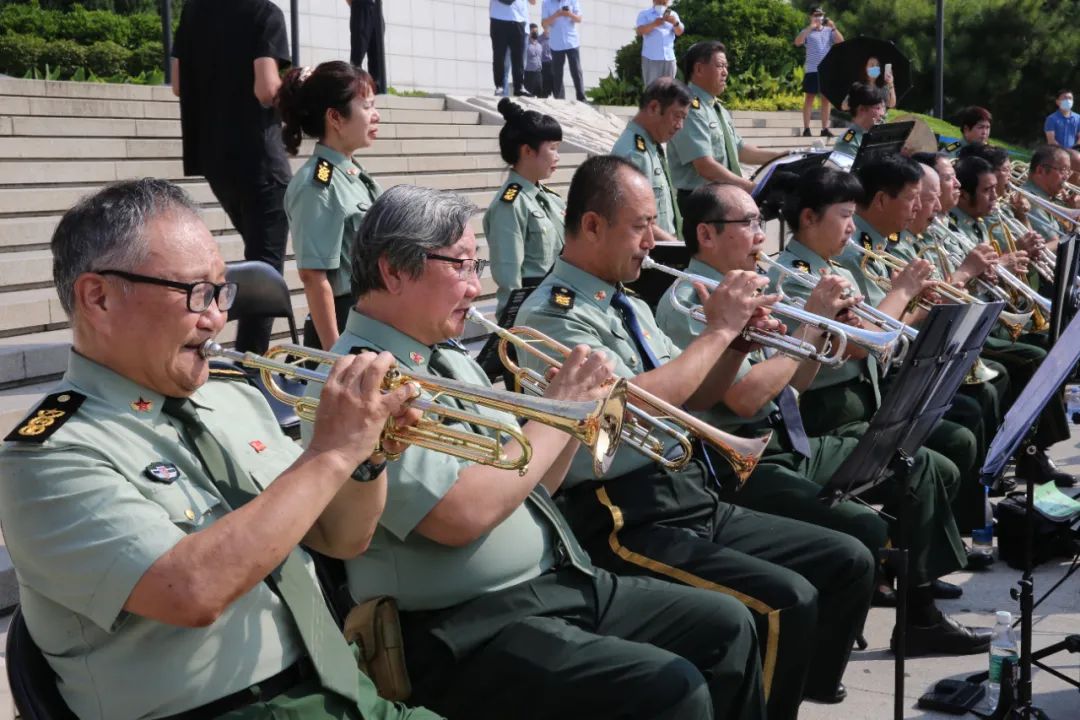 管樂團首先展演了《中國人民解放軍軍歌》(《八路軍進行曲》)、電影《地道戰》主題曲、小號三重奏《游擊隊之歌》、管樂協奏曲《保衞黃河》等經典曲目,激昂奮進的樂章充滿吶喊與怒吼,迸發一往無前的力量,讓人們在回顧抗日烽火歲月中感受到黨領導人民不屈不撓、浴血奮戰的偉大歷史。