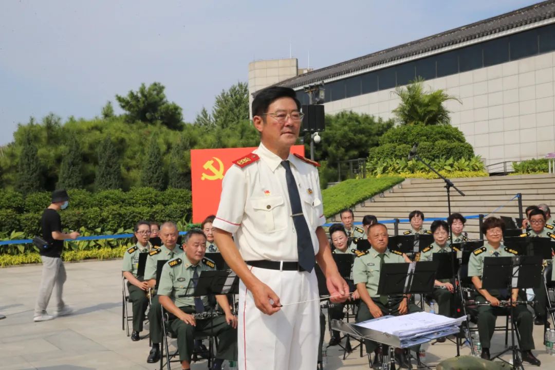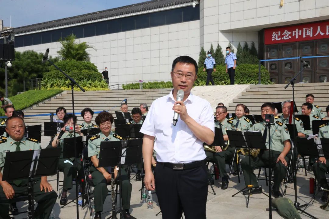 上午9時30分,音樂會在曲目《永遠的盧溝橋》中拉開帷幕。解放軍軍樂團原一級演奏員張德宏執棒指揮,抗戰館志願者管樂團——北京金浩管樂團近百位樂手,以整齊的陣容和悠揚的樂聲,吸引不少來館觀眾駐足觀看。