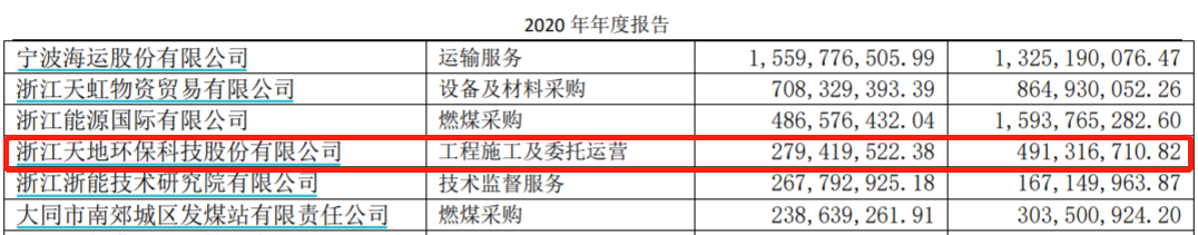 但事實上,根據浙能電力發佈的2020年年報,2019年和2020年對天地環保的銷售金額分別高達2.85億元和1.27億元,2019年的銷售金額幾乎是天地環保披露的採購金額的兩倍以上,而2020年披露的銷售金額則比天地環保披露的採購金額少了約五千萬元。