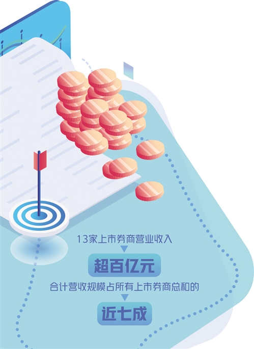 半年報數據顯示,頭部券商地位依然穩固,共有13家上市券商營業收入超百億元,合計營收規模佔所有上市券商總和的近七成。中信證券居“領頭羊”位置,其營業收入達到377.21億元,緊隨其後的分別為海通證券、國泰君安,營業收入分別為234.71億元、219.18億元。值得關注的是,在營收增速方面,多家中小券商的表現尤為亮眼。如中原證券、紅塔證券和浙商證券上半年營收同比增速均超過50%。