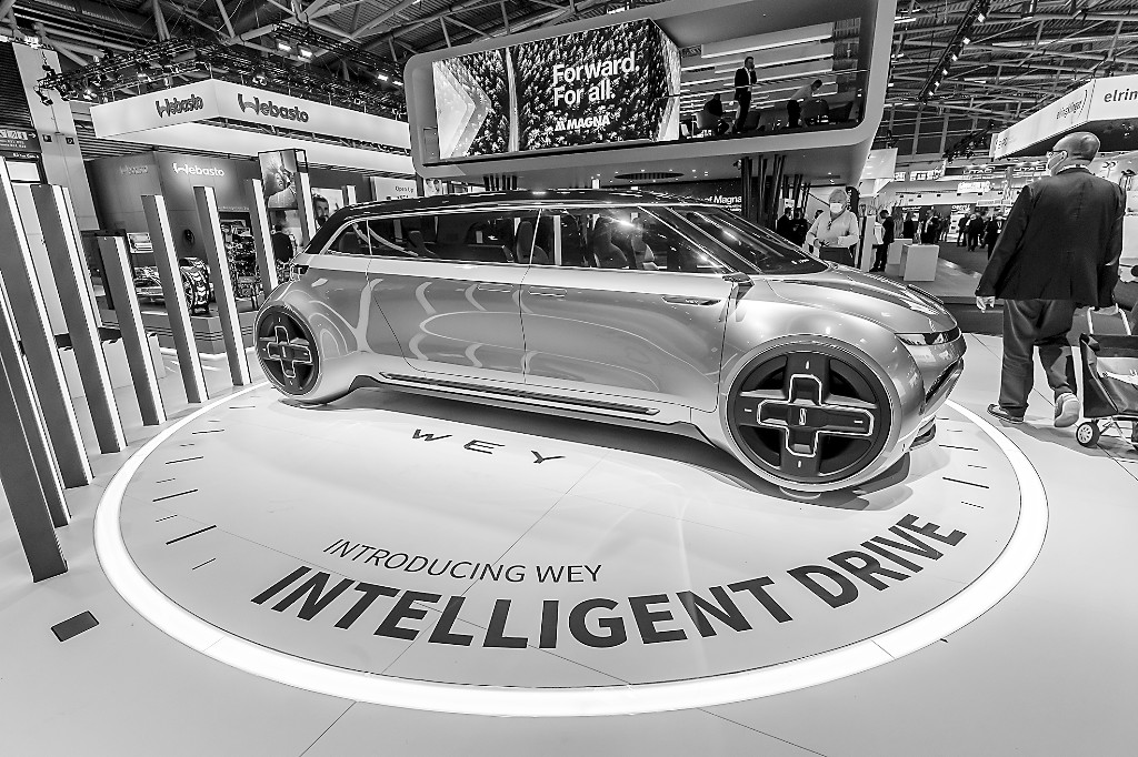 儘管歐洲企業是展會的主角,但“特斯拉”和“中國車”兩個詞仍是車展使用最頻繁的詞彙之一。記者看到,儘管疫情阻礙,但多家中國企業也前來參展。長城汽車帶來高端SUV品牌WEY和純電動品牌ORA汽車,以及一款智能概念汽車(如圖)。華為展示了智能終端設備等產品。小鵬汽車、零跑汽車、北京海納川等也以線上或線下形式參展。