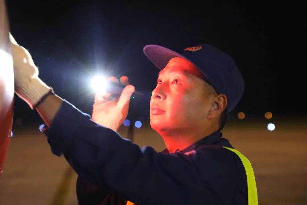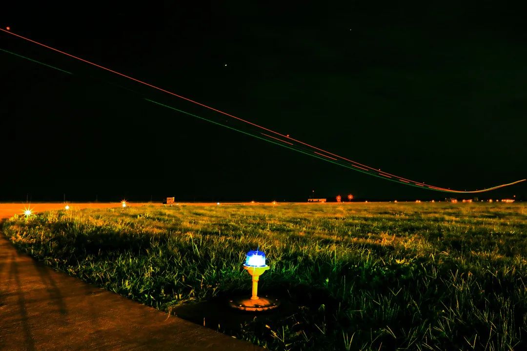 夜色深沉,航燈閃爍