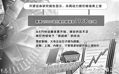 從6月份迎峯度夏開始,煤炭供應不足,煤價持續處於“煤超瘋”的狀態。受此影響,火電企業日子頗為艱難。近期,上海、內蒙古、寧夏等多地都開始上調電價。