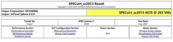 北京2021年9月7日 /美通社/ -- 國際權威標準性能評估組織SPEC(Standard Performance Evaluation Corporation),日前發佈了新一期SPECvirt_sc2013性能測試結果,基於浪潮自研NVMe SSD提供的高性能存儲,浪潮雲海虛擬化InCloud Rail在I/O棧進行了全方位的性能優化,簡化了從虛擬磁盤到物理磁盤的數據傳輸通道,刷新Intel兩路服務器上虛擬化軟件性能測試成績,以4679分霸榜全球第一。