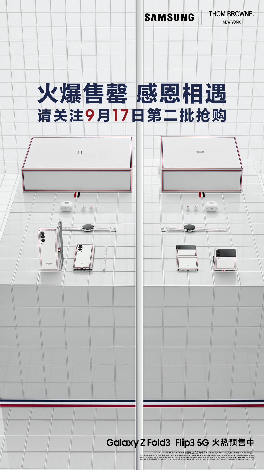 9月8日消息,今日上午,三星Galaxy Z Fold3 5G Thom Browne限量版和Galaxy Z Flip3 5G Thom Browne限量版正式開啓限量搶購。三星稱,在活動啓動後,三星網上商城中兩款Thom Browne限量版產品已全部告罄。同時,天貓、京東等三星手機官方旗艦店也已售罄。據三星表示,9月17日,兩款Thom Browne限量版產品將開啓第二輪搶購。