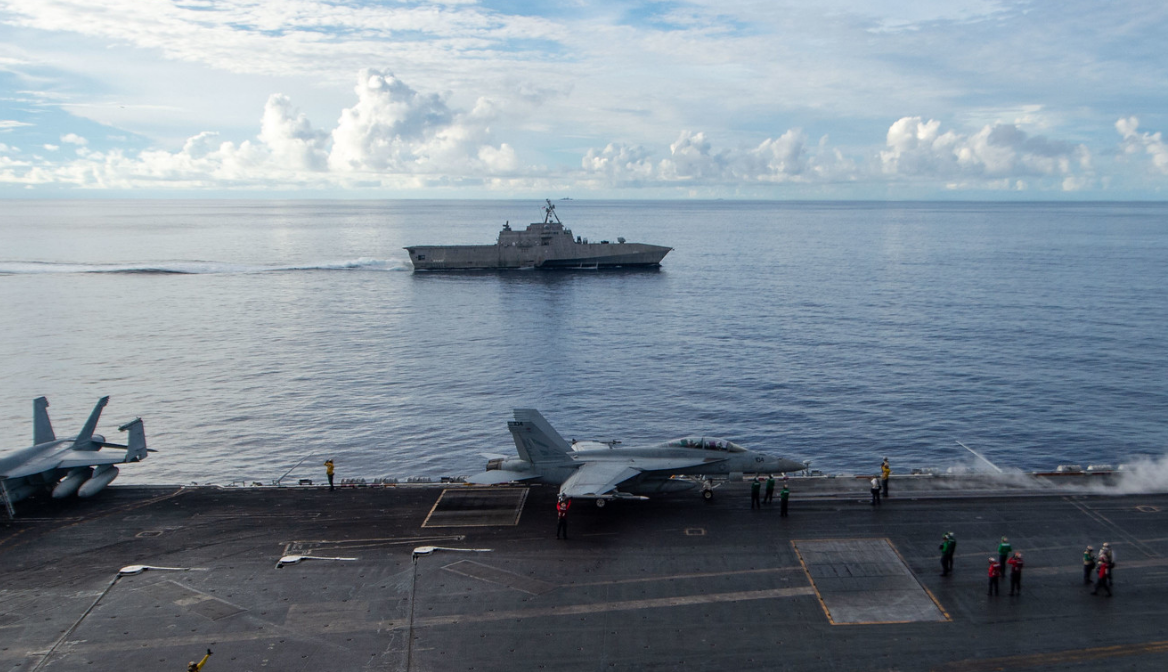 9月7日,“卡爾·文森”號航母與“塔爾薩”號瀕海戰鬥艦聯合演練。