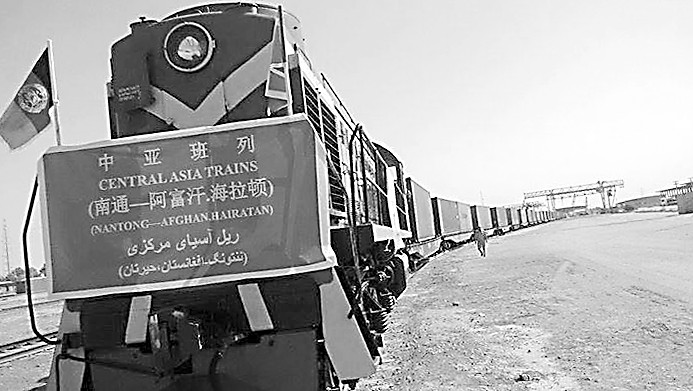 《環球時報》記者從中國駐阿富汗大使館官網查詢的消息顯示,2016年8月,中阿首趟直達貨運班列從江蘇南通開往阿富汗海拉頓,並將中阿兩國貨物運輸所需時間縮短3/4。