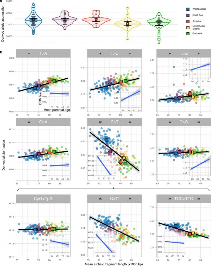 Coll Macià 表示:“年長的父母比年輕的父母向他們的孩子傳遞不同的突變。在這項研究中,我們發現從尼安德特人的遺產中估計有年長父母的人羣也有暗示年長父母的突變。例如,我們看到東亞人口的父親往往比母親年齡大,而歐洲人口的父親和母親的年齡相近”。