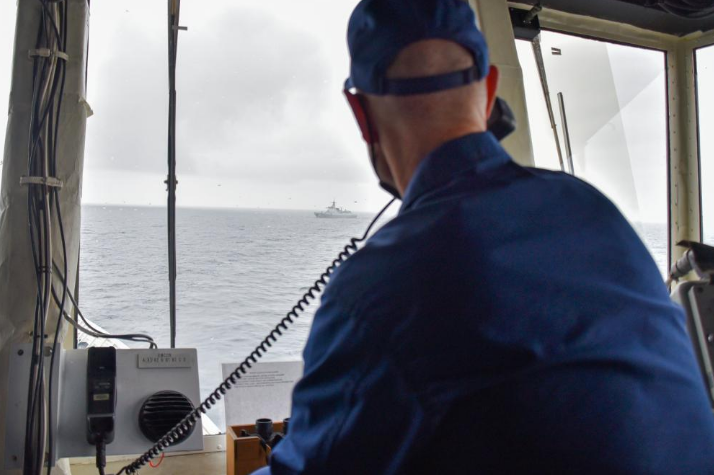 美方在此前發佈的一張照片下方配文稱:“美國海岸警衞隊的‘伯索夫’號巡邏艦艦員對在阿留申羣島海岸附近、美國專屬經濟區內活動的中國海軍艦船進行近距離監視。這支中國海軍艦隊包括一艘導彈巡洋艦、一艘驅逐艦、一艘情報偵察船和一艘輔助艦船。”另一張照片的配文則是“美國‘伯索夫’號巡邏艦艦長與一艘在美國專屬經濟區內的中國軍艦進行了交流,雙方的互動都是安全的和專業的,並且根據西太平洋海軍論壇制定的《海上意外相遇規則》,以及《國際海上避碰規則》的國際標準,展開對話溝通。”
