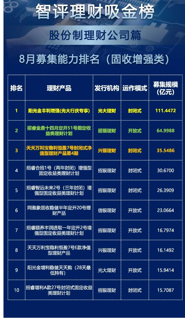 8月銀行理財加速擴容,光大理財2只產品募集百億居首