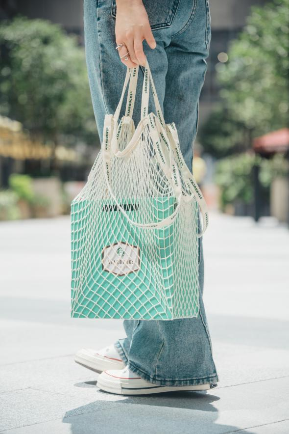 同時,據記者瞭解,為了減少一次性紙袋的使用,星巴克還提供了更有效的打包方案——選擇星悦和星奕禮盒的顧客可以獲得一款百搭網兜包。網兜包用100%再生聚酯(RPET)纖維打造,好看又實用,還可以循環使用。