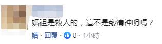 也有網友諷刺,“媽祖是救人的,這不是褻瀆神明嗎?”↓