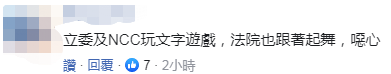 另外,對於此前國民黨籍台中市長盧秀燕因參演一部電視劇被“NCC”判罰,而民進黨“立委”陳亭妃這次扮“媽祖”卻沒有任何問題,有網友痛批:(民進黨)“立委”和“NCC”玩文字遊戲,法院也跟着起舞,噁心。↓