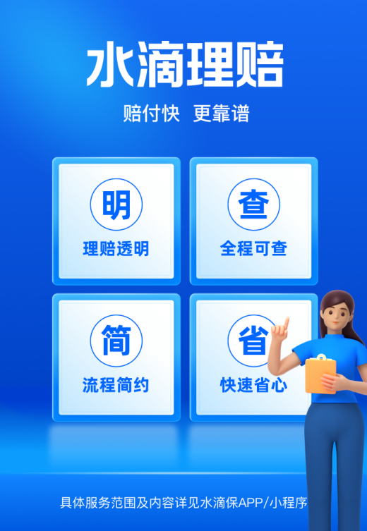 水滴保升級理賠服務,萬元以下責任明確案件1-3日內完成賠付