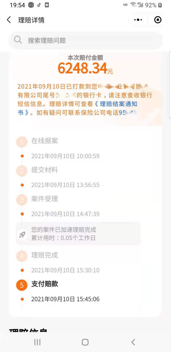來自江西省的孫先生是水滴保理賠服務升級後體驗的首批用户。孫先生不幸確診扁桃體鱗狀細胞癌正在進行治療,9月10日上午10點他通過水滴保發起理賠申請並在線提交完整理賠資料,理賠金額為6248.34元,當天下午15點30分孫先生即收到結案通知,從在線報案到理賠完成僅用了5個多小時;而在水滴快賠服務的加速下,剔除孫先生自己報案以及準備材料的時間,從水滴保實際受理案件到理賠審核完成耗時不到43分鐘。