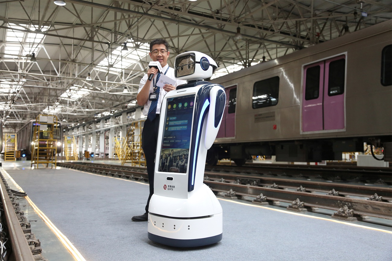 在制服發佈會現場,一位特殊的“新員工”——智能車站機器人也初次亮相。與制服換新同步,機器人的外觀也融入京港地鐵第二代制服的藏青色,肩部印有象徵京港地鐵企業信念的四色彩帶。在現場,智能車站機器人化身出行小管家阿捷與主持人和網友互動,它將於近期在京港地鐵部分車站上線,可提供服務問詢、路徑引導等智能服務。