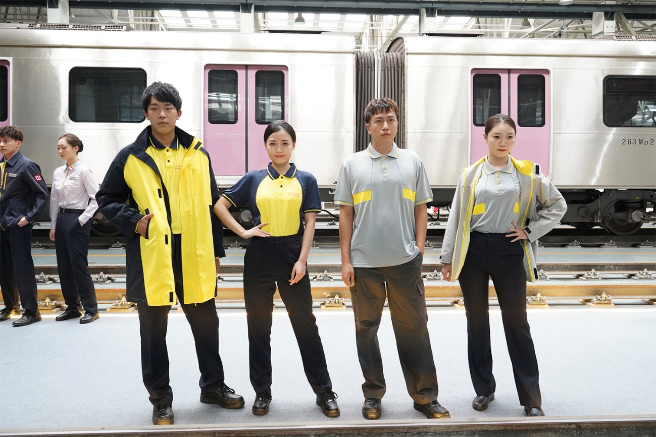 站務、乘務等運輸相關專業的新版制服以藏青色為主色調,內搭典雅的淺紫色襯衫,衣服的不同位置增加了繡花章、織帶等元素,輔以黃色作為配色,使員工顯得神采奕奕並易於辨識。中式立領西裝和毛呢外套盡顯幹練,短款風衣、大衣外套則更具現代感、更親切,為乘客在出行過程中傳遞温暖和安心,同時,由於地面站和地下站的工作環境有所差別,新制服還設計了標準長度與過膝超長兩種規格的外套,在寒冷的冬季,增加地面站員工制服的保暖度。新制服左肩部位內置手台懸掛鈎,便於快速應答,處理工作;襯衫胸前的口袋添加了插筆結構,方便隨時記錄乘客問題;新增的腰包配飾,可以隨身攜帶乘客服務手冊、設備鑰匙等工作用品,確保及時為有需要的乘客提供幫助。