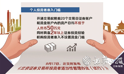 北交所個人投資者准入門檻確定“50萬元+2年”