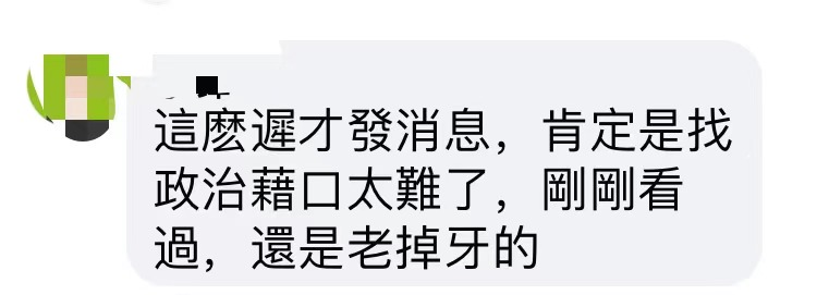有島內網友諷刺説:“這麼遲才發消息,肯定是找政治藉口太難了,剛剛看過,還是老掉牙的。”↓