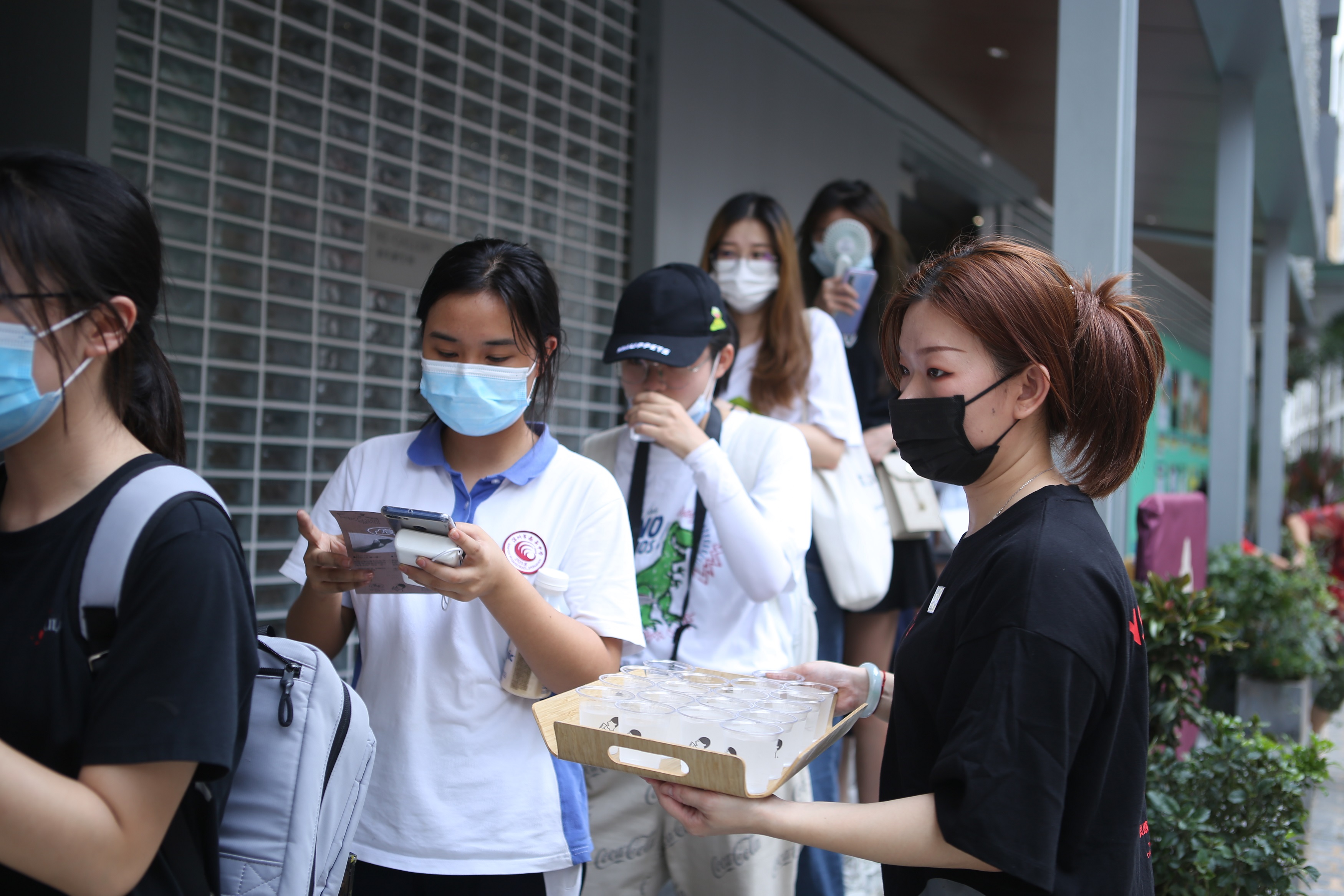 雖然正式營業時間是早上10點,但9點不到,就已經有慕名而來的顧客抵達喜茶南頭古城店一邊排隊等候開業,一邊向店員詢問新店中的手造新品信息。