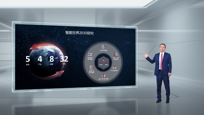 華為常務董事、ICT產品與解決方案總裁汪濤以“無界探索,翻開未來”為主題演講,發佈了《智能世界2030》報告。這是華為首次通過定量與定性結合的方式,對未來十年的智能世界,進行系統性描繪和產業趨勢的展望,幫助各行各業識別新機會,發掘新價值。