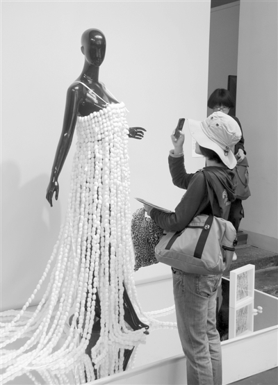 圖為曾在上海世博園外南京路步行街虹廟藝術中心亮相、由法國設計師設計的服裝。該衣服使用了遇熱變色材料,人們一碰它就會自動變色。視覺中國供圖