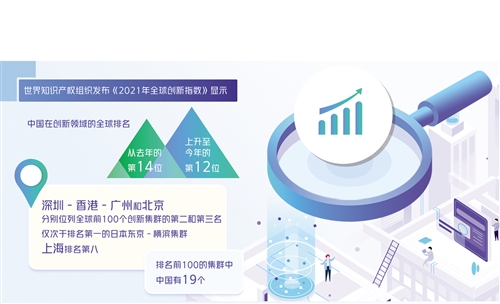 本報日內瓦訊(記者楊海泉)9月20日,世界知識產權組織(WIPO)發佈《2021年全球創新指數》顯示,中國在全球創新指數排名上持續多年保持穩定進步態勢,排名從去年的第14位上升至今年的第12位。