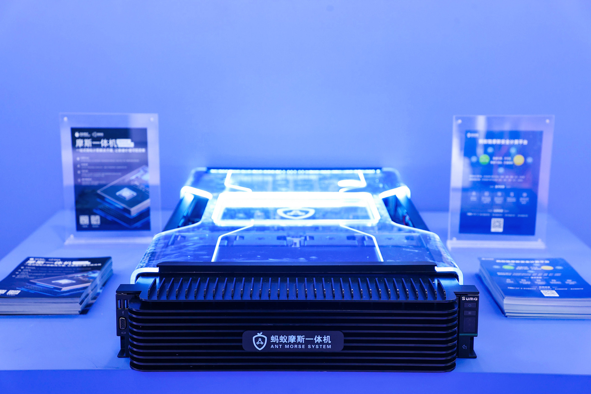 記者在現場看到,此次展出的摩斯隱私計算一體機外觀是一個黑盒子,集合了200多項軟硬件專利於一身。據介紹,螞蟻摩斯隱私計算一體機基於螞蟻鏈摩斯多方安全計算平台,深度整合了隱私計算、可信硬件、區塊鏈等多種自主研發的技術。