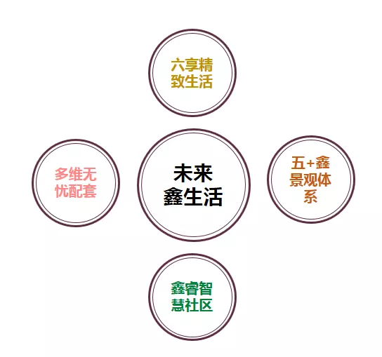 鑫苑集團以「六享精緻生活」、「五+鑫景觀體系」、「鑫睿智慧社區」、「多維無憂配套」為四大核心價值點詮釋價值主張,同時融入國際化及科技智慧的企業基因。