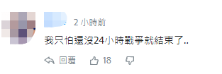 還有網友表示,“我只怕還沒24小時戰爭就結束了……”,有網友表達相同觀點,未來的戰爭在24小時內勝負已經決定了,你動員兵員做什麼?↓