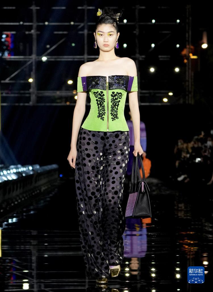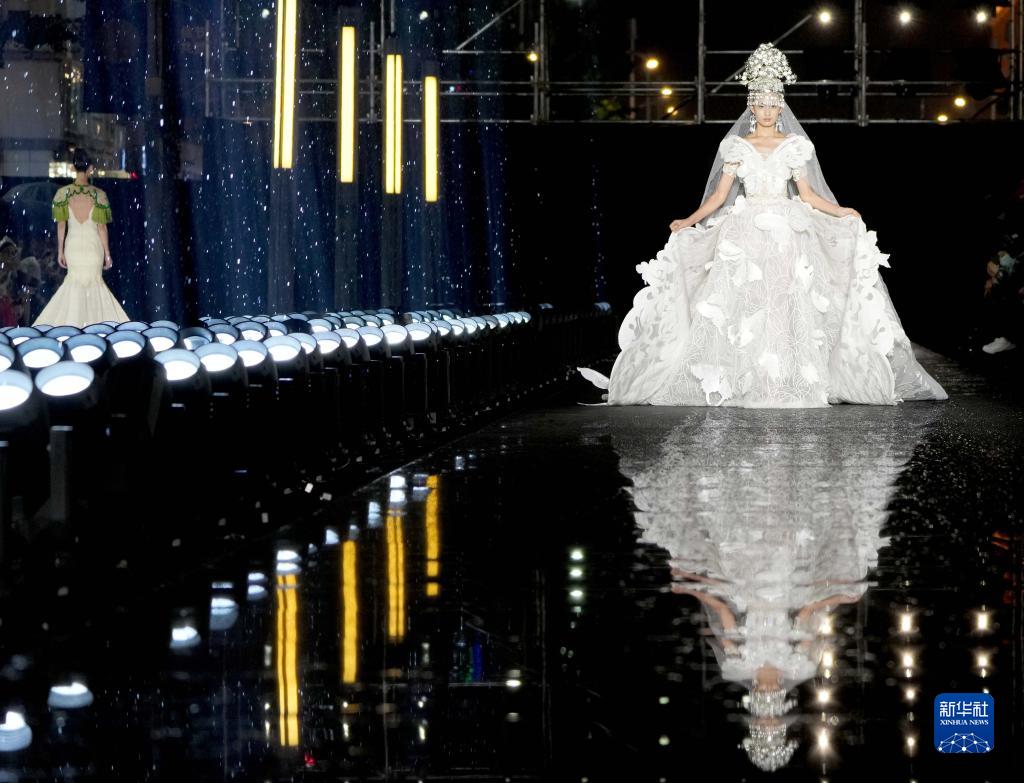 9月26日,模特在北京時裝週閉幕大秀上展示勞倫斯·許設計的時裝。
