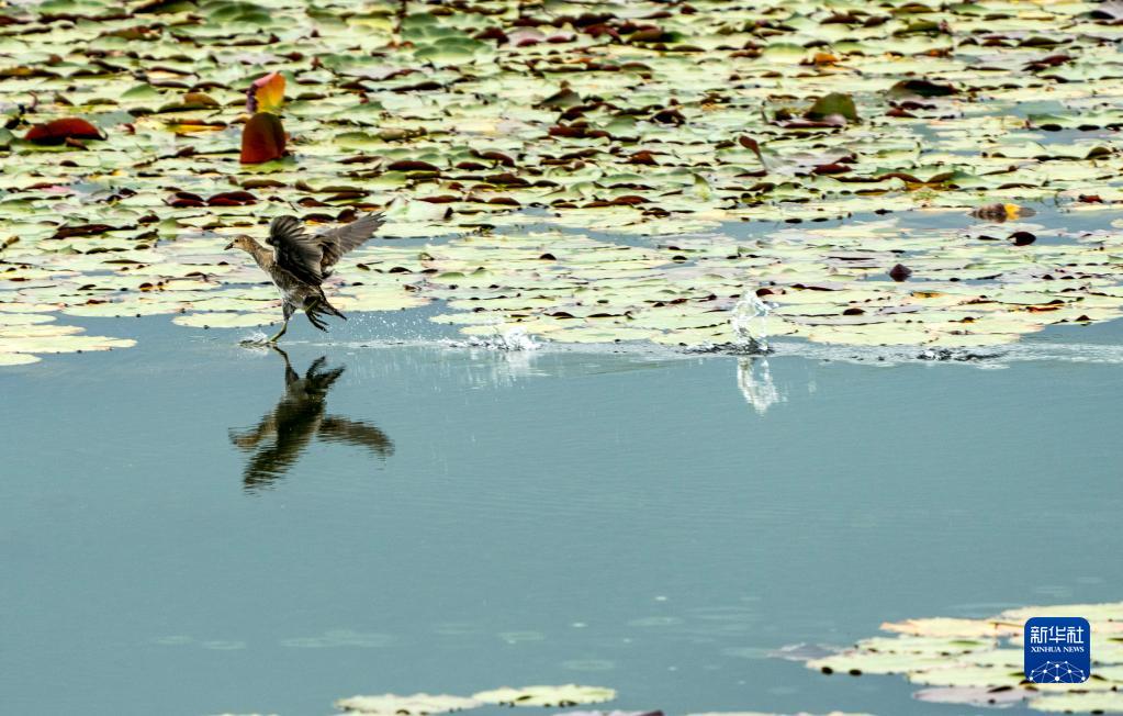 水鳥在昆明寶豐半島濕地嬉戲(9月25日攝)。