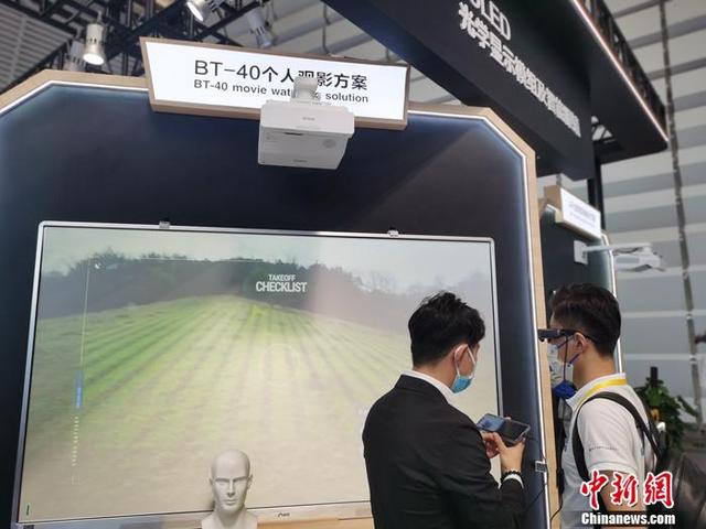 很多參觀者爭相試戴,儼然變身“鋼鐵俠”。其中,有一款特殊AR眼鏡,佩戴之後,手機、電腦裏的內容就會投射到一個5米120寸的屏幕上,可實現移動觀影體驗,做家務時都能看電影;同時也能滿足移動辦公需求,所有資料投射到AR屏幕,保證隱私安全性。