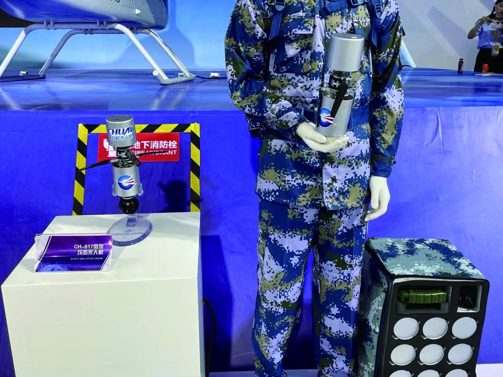 除了大型無人機,本次航展中彩虹無人機展台還出現了一款單兵手持的微型無人機——彩虹-817微型攻擊無人機,該產品也是首次亮相航展。