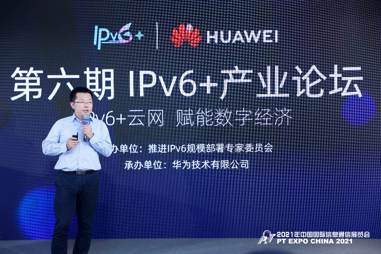 2021年9月27日下午,“第六期IPv6+產業論壇”與北京“2021 年中國國際信息通信展覽會”(PTEXPO CHINA 2021)同期舉行,本次論壇由推進IPv6規模部署專家委員會主辦,華為技術有限公司承辦,論壇以“IPv6+雲網,賦能數字經濟”為主題,邀請全國數十位行業專家、學者匯聚一堂,交流“IPv6+”在數字經濟場景下的產業政策、戰略和實踐,深化產業共識,促進“IPv6+”在全行業的創新及落地,從而進一步推動IPv6網絡加快規模部署。