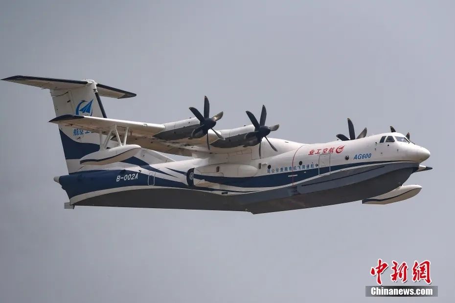 9月28日,廣東省珠海市,大型滅火/水上救援水陸兩棲飛機“鯤龍”AG600進行飛行投水功能演示。中新社記者 陳驥旻 攝