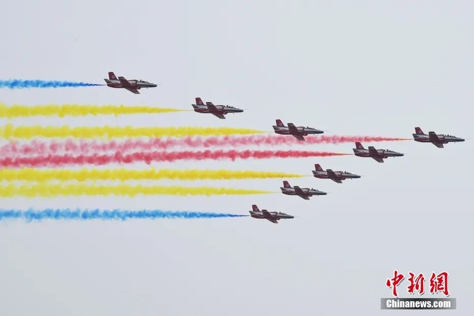 9月28日,廣東省珠海市,中國空軍“八一”飛行表演隊表演特技飛行。中新社記者 陳楚紅 攝