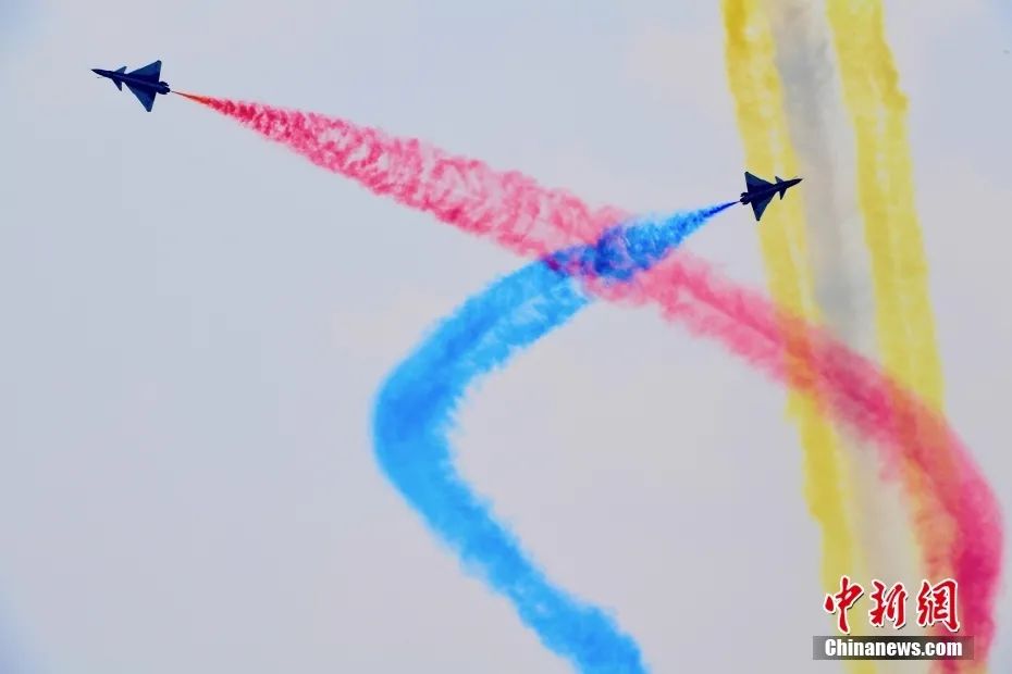 9月28日,廣東省珠海市,中國空軍八一飛行表演隊進行飛行表演。當日,第十三屆中國國際航空航天博覽會在珠海國際航展中心開幕。中新社記者 陳文 攝
