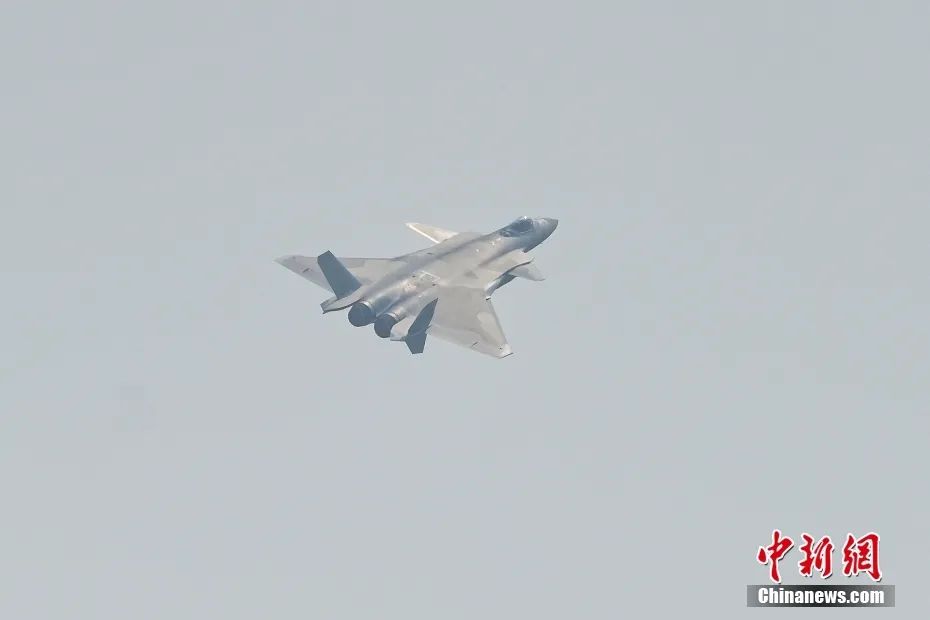 9月28日,廣東省珠海市,殲-20戰機在珠海國際航展中心上空飛過。中新社記者 陳驥旻 攝