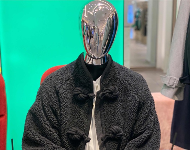將旗袍改良成現代款已不算新鮮,在銀泰百貨武林店的三樓至六樓,隨意挑個品牌,就可能會有一款。只不過今年秋冬的旗袍,加上了更多復古元素,如燈芯絨、復古大花紋等。而旗袍上的經典元素——盤扣,則被玩出了花。