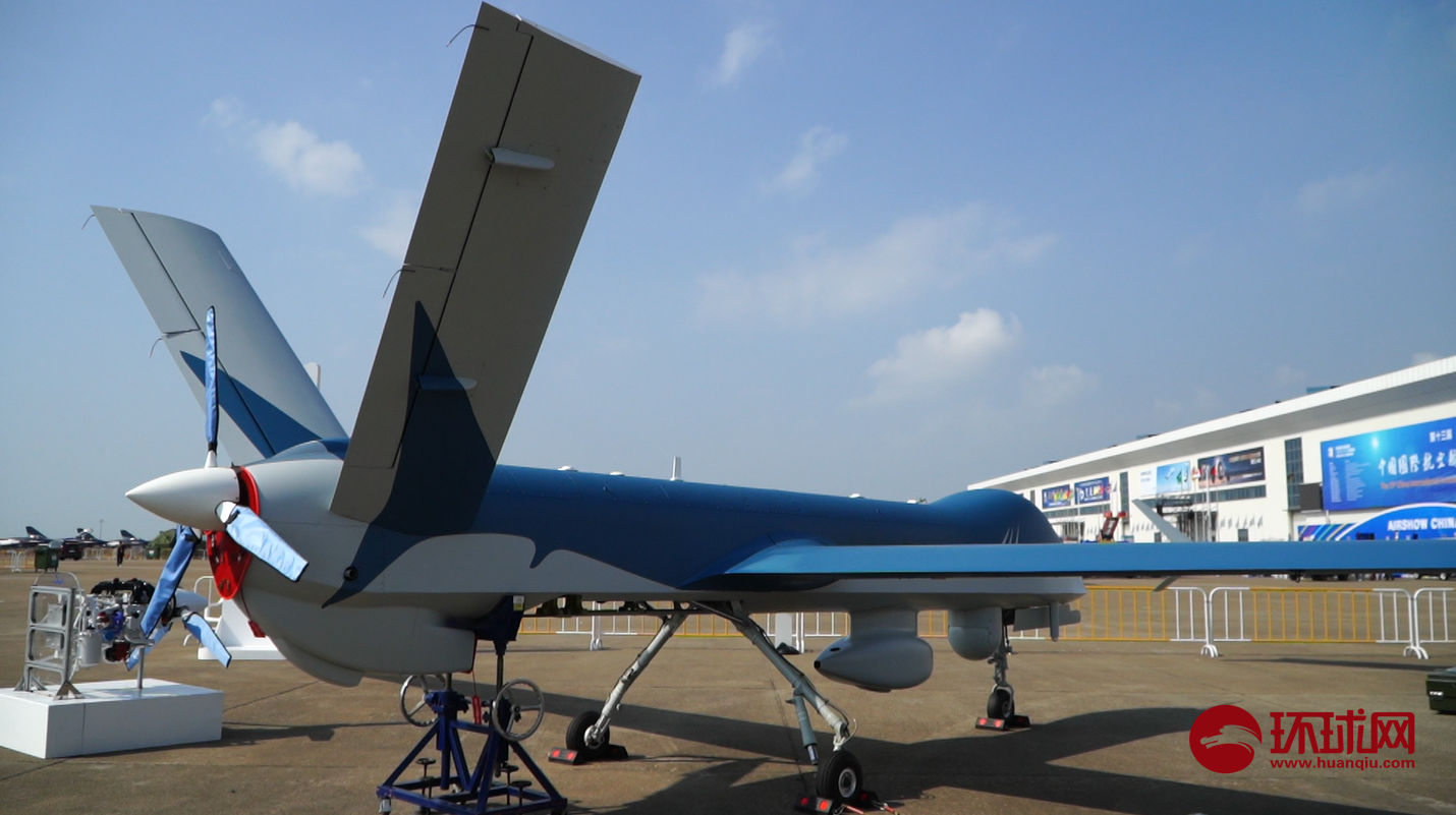 【環球網報道 記者 徐璐明】在9月28日開幕的第13屆中國航空航天博覽會上,中國“彩虹”系列無人機“組團”登場,其中就有經典的彩虹-4無人機。雖然已經是航展的“老面孔”,但彩虹-4無人機在這次航展上也給觀眾們帶來了新的驚喜。