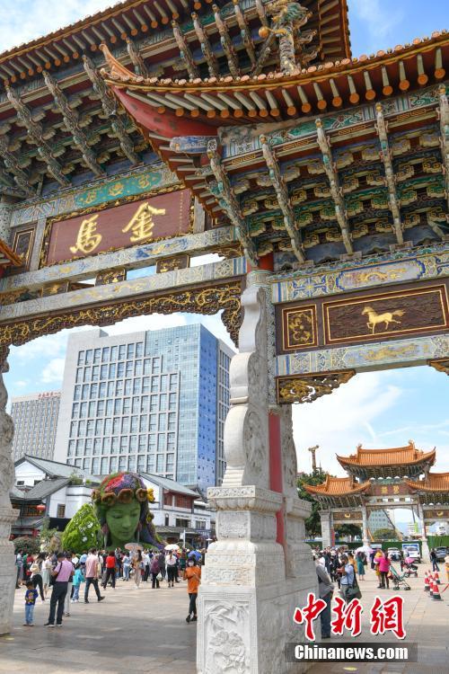 9月29日,金馬坊的立體花壇吸引市民。近日,為迎接即將在昆明舉辦的COP15,以“花融春城 共襄美好”為主題的中國·昆明立體花壇大賽100組入圍作品在昆明市區驚豔亮相,色彩豐富、造型獨特的立體花壇吸引眾多民眾拍照打卡。 中新社記者 劉冉陽 攝
