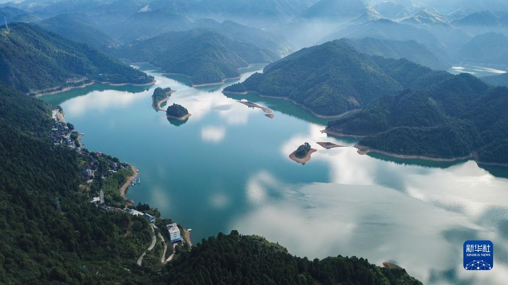 這是位於南山國家公園體制試點區的茅坪湖(9月22日攝,無人機照片)。