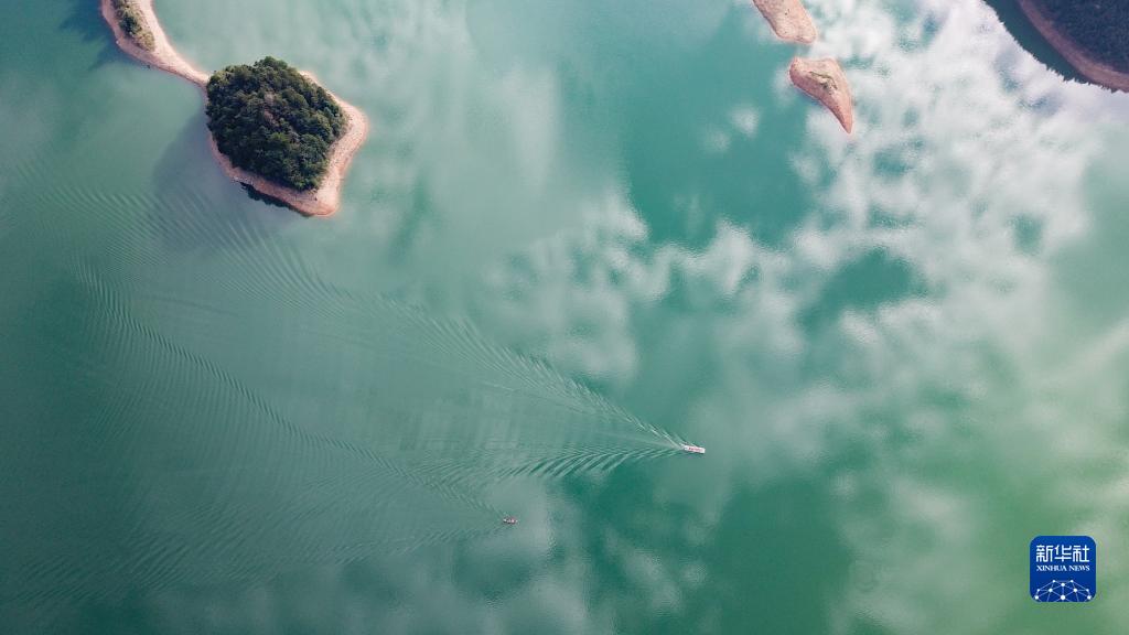在南山國家公園體制試點區的白雲湖國家濕地公園,小船在湖面上行駛(9月23日攝,無人機照片)。