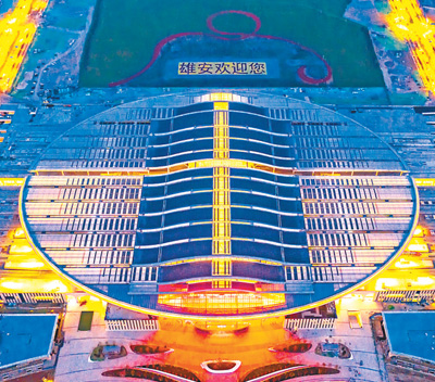 4月22日,燈光照射下的雄安高鐵站璀璨奪目。雄安高鐵站位於河北省雄安新區雄縣城區東北部,是京雄城際鐵路規模最大的新建車站。