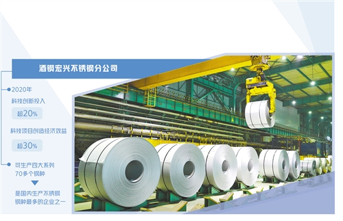 酒鋼宏興不鏽鋼分公司堅持科技創新,2020年的科技創新投入超20%,科技項目創造經濟效益超30%。