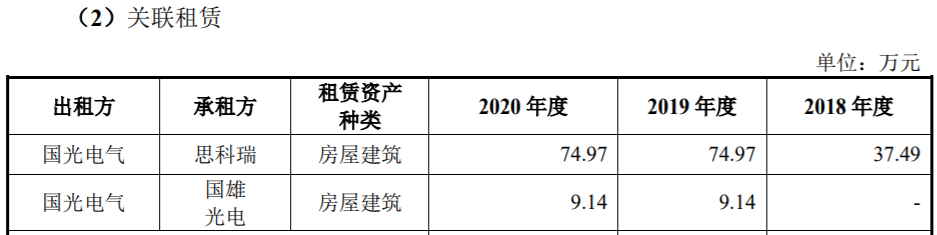 與此類似的還有關聯租賃費,思科瑞披露2018年到2020年與國光電氣結算租賃費分別為39.36萬元、78.72萬元和78.72萬元,而國光電氣披露的金額則分別為37.49萬元、74.97萬元和74.97萬元,均與思科瑞披露的金額存在差異。